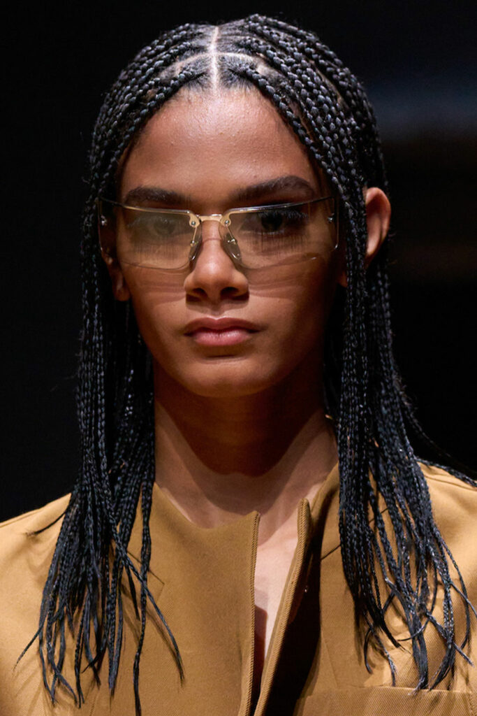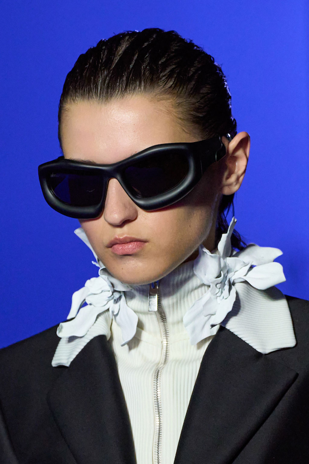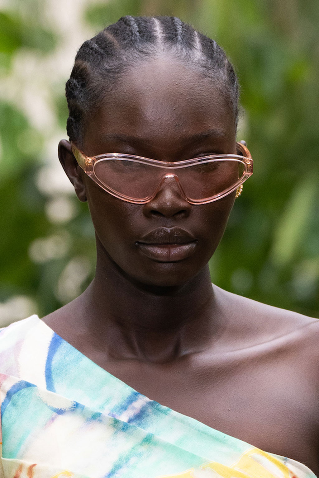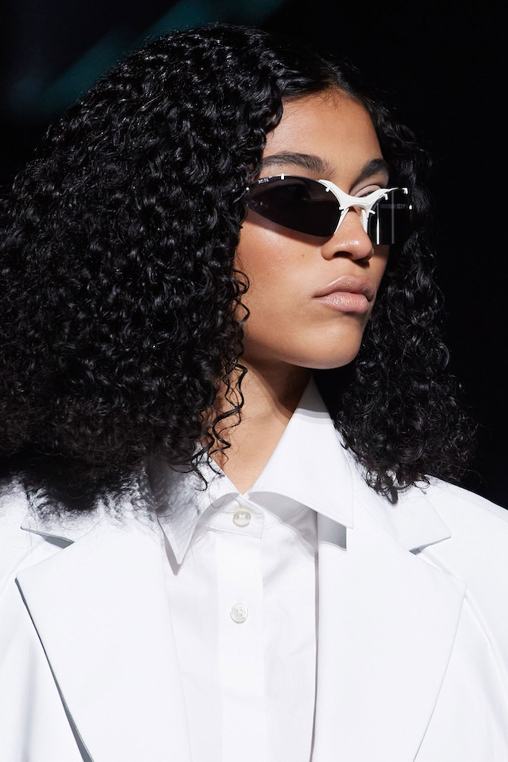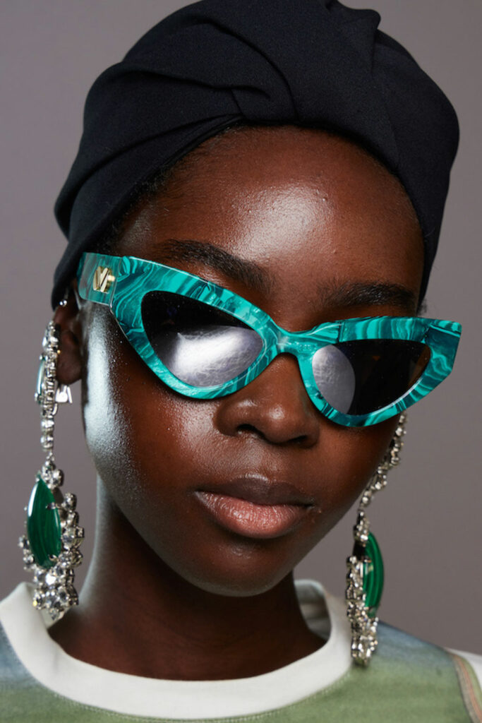 Expressive Extravagance. For SS23 the runways have presented a large number of sunglasses that enhanced the storytelling of collections. Wether the eyewear accessories enhanced the futuristic and extraterrestrial vibe in shields and racers or built on femininity with sassy cat-eyes or dramatic slim silhouettes, all eyewear managed to stand-out. The more edgy approach to shades underlines consumers desire to stand-out, to enhance their attitudes and look and to dare to be different. The biggest novelties include trending frameless 2000s styles, Almost-absurd Outlines or extremely enhanced and sharp cat-eyes. Dive into more inspiration below: