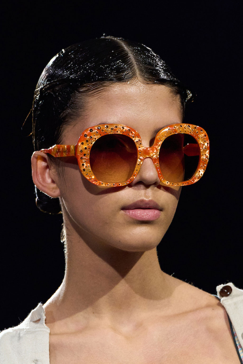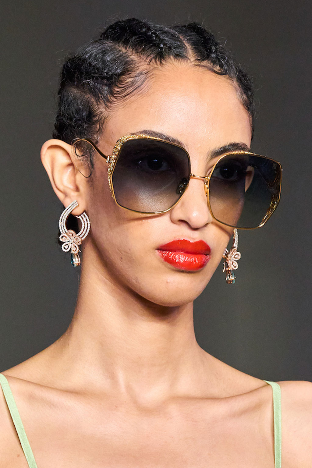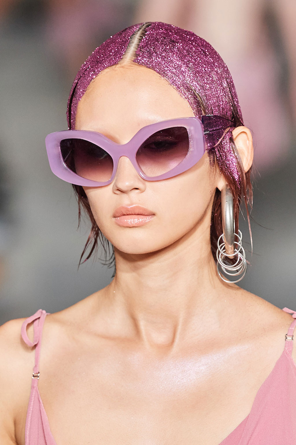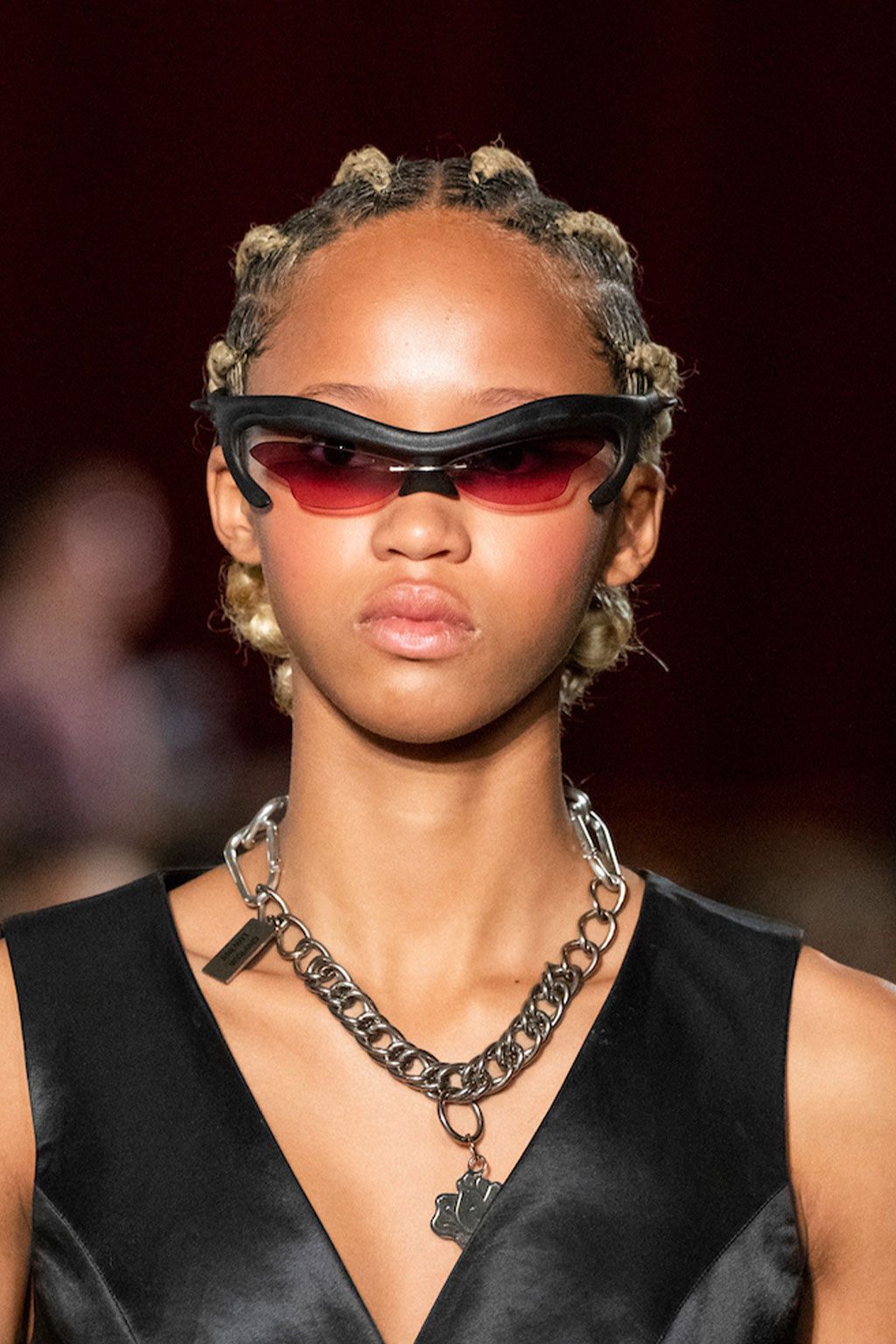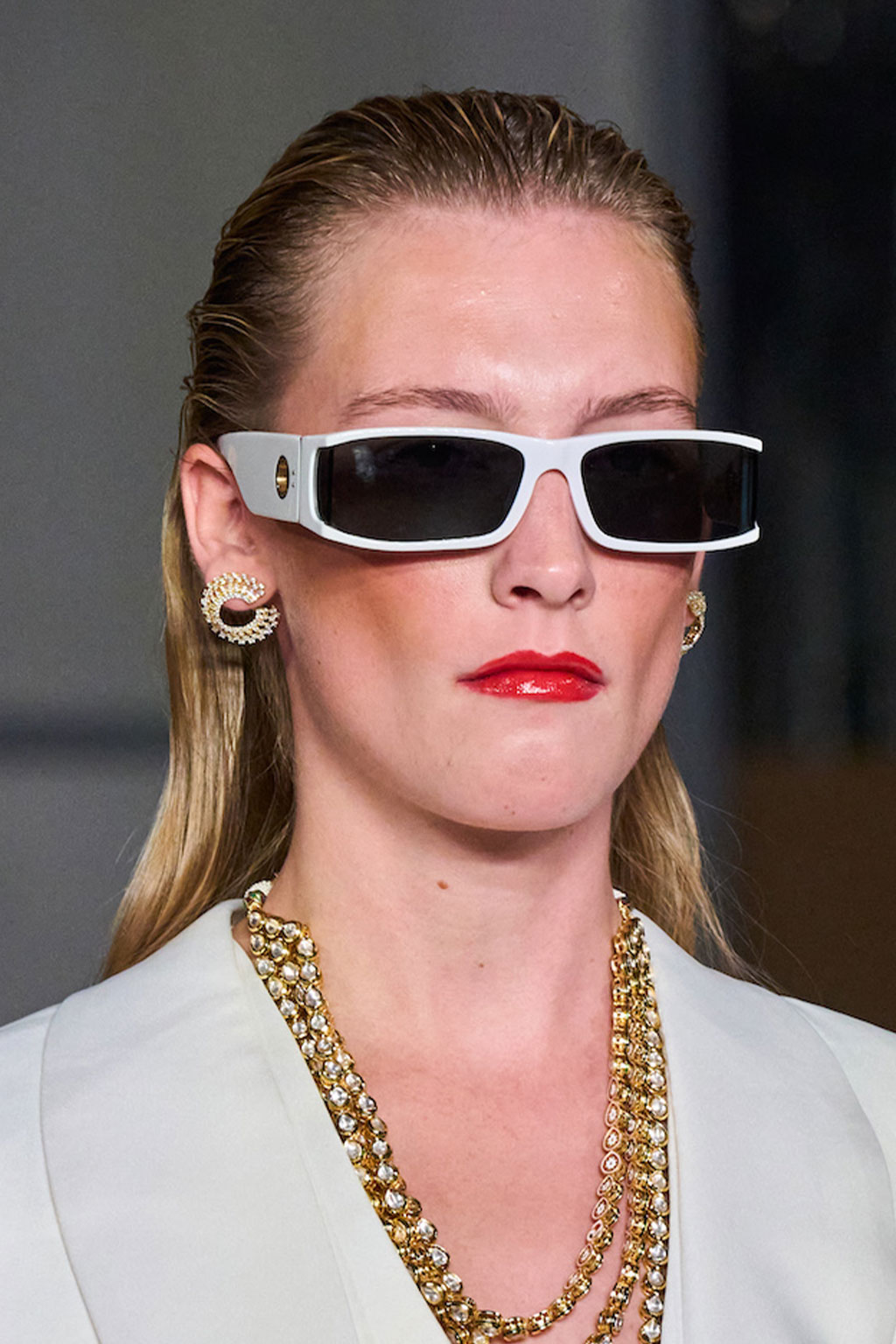 Expressive Extravagance. For SS23 the runways have presented a large number of sunglasses that enhanced the storytelling of collections. Wether the eyewear accessories enhanced the futuristic and extraterrestrial vibe in shields and racers or built on femininity with sassy cat-eyes or dramatic slim silhouettes, all eyewear managed to stand-out. The more edgy approach to shades underlines consumers desire to stand-out, to enhance their attitudes and look and to dare to be different. The biggest novelties include trending frameless 2000s styles, Almost-absurd Outlines or extremely enhanced and sharp cat-eyes. Dive into more inspiration below: