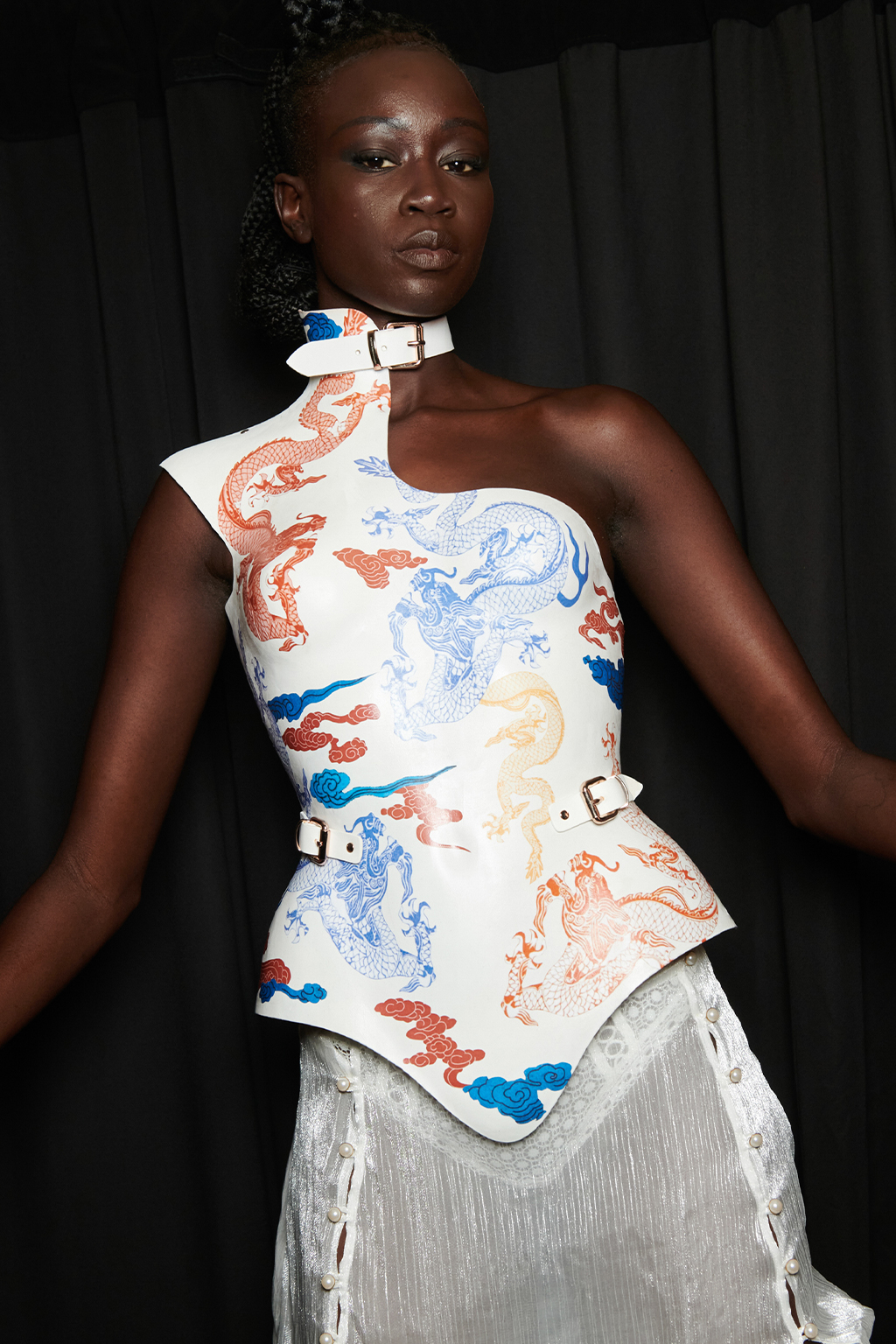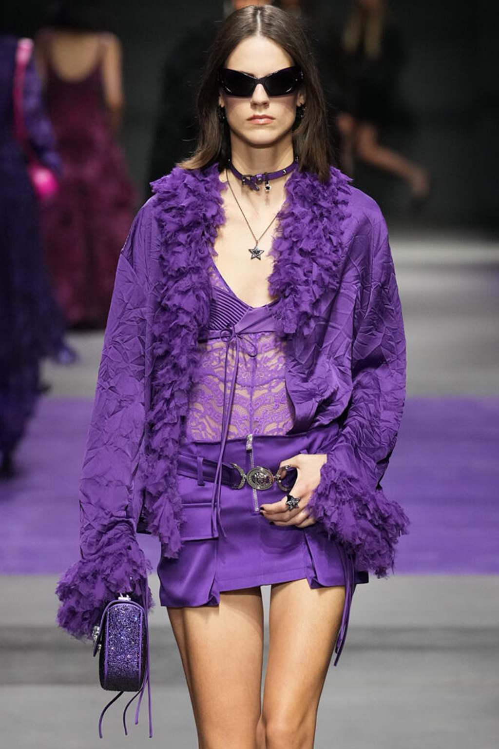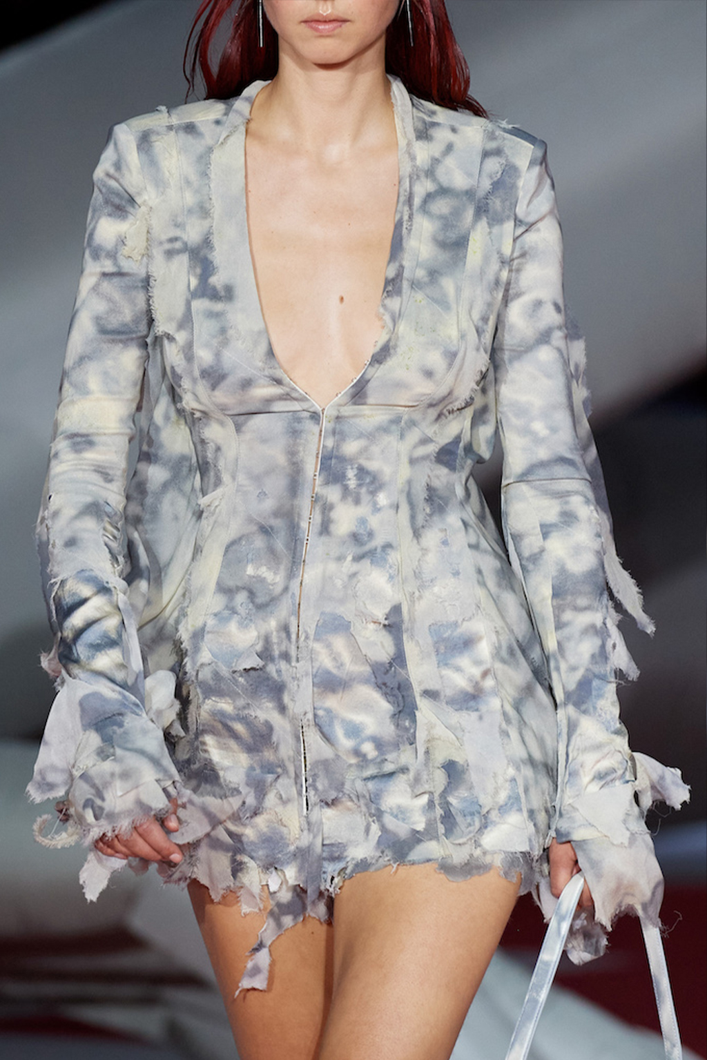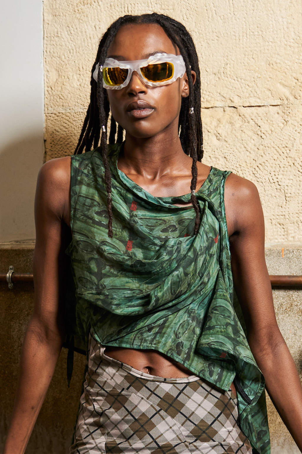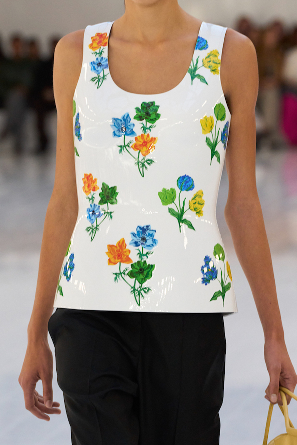 Easy Elegance. SS23 topper is taking advantage of the on-going Y2K influence. From frivolous blouses to cropped silhouettes, halter styles and baby tees the season is showing how the fun Millennium Look can be adjusted to our zeitgeist. Wrapped and Drape elements are key for a sophisticated notion, while cut-outs dare to explore new spaces, from belly to shoulder. The SS23 material and color offer that is focused on featherweights is infusing tops with a lucid effect, almost nude, when we look at the new minimal tank, sheer tops and large number of body-baring bralettes. Despite structured pieces like corsets or hyper-fitted drapes, a gentle padding effect maintains the free and liberating sensation and does not feel restricting. Take a look at the SS23 Bralette Section and the Emerging Fashion Pieces at the end of the report.