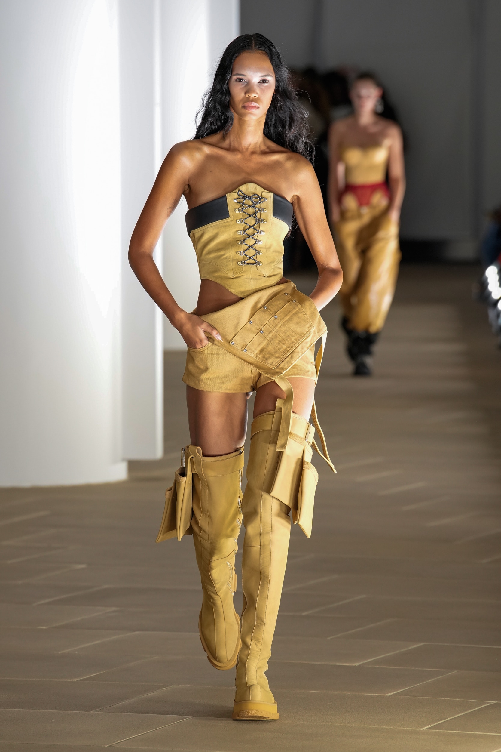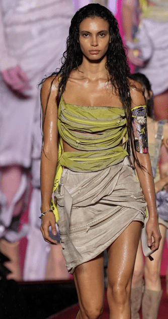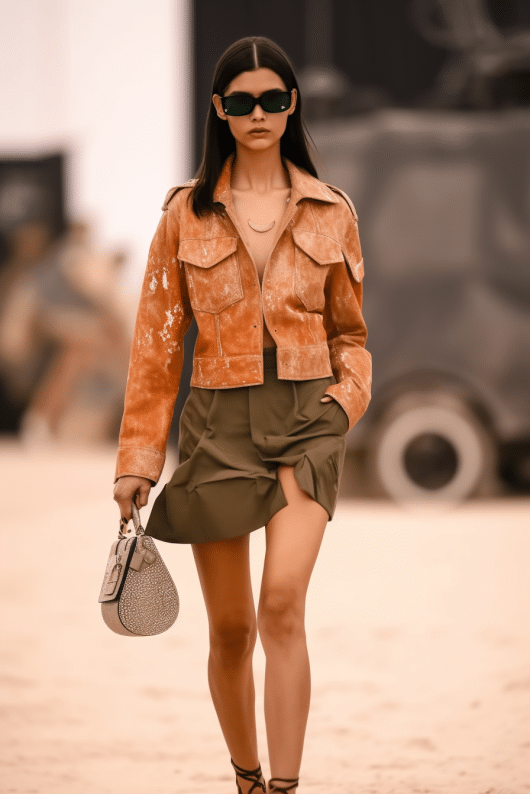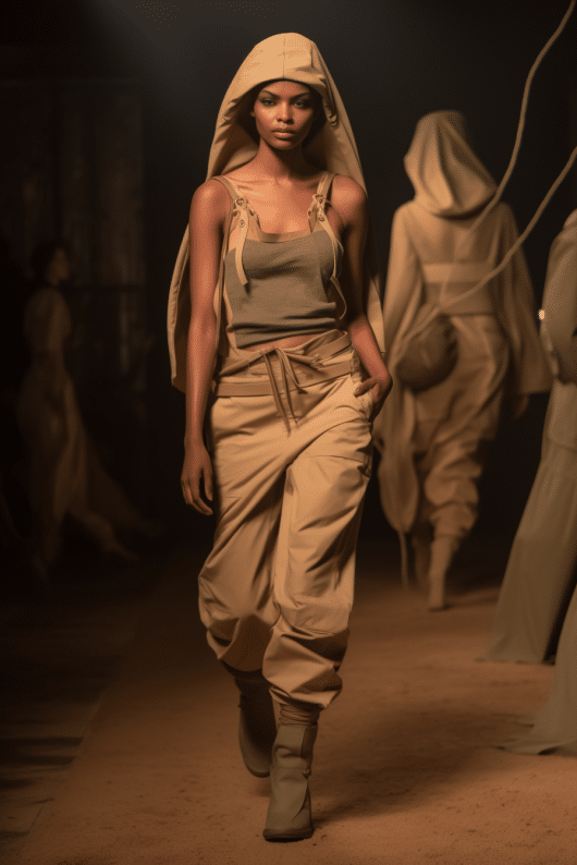This SS25 trend is responding to the emergency state of the world. With nothing to lose, this story is on a quest for an entirely new world. The theme puts focus on the potential of raw and solar power, and allows a surprisingly natural futurism to emerge. This trend introduces a wild new age, where survivalism prevails and new terrains between urban concrete and sandy dunes emerge. This extraterrestrial off-grid vibe gives way to the evolution of subversive new nomads and warriors, who are seeking to secure our human patrimony in previously unexplored spaces.