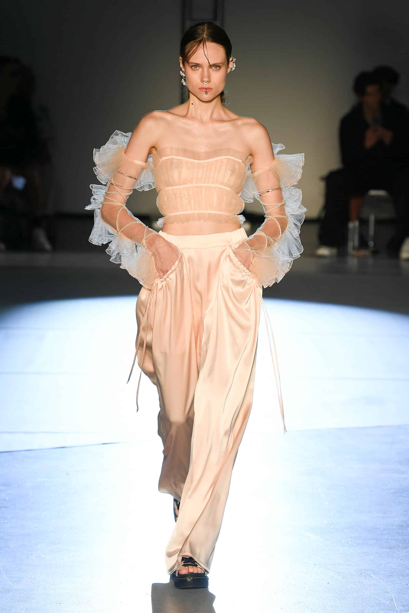 With this SS25 story, more honest consumers are seeking to make sense of their emotional turbulence in a sentimental yet brave approach. By confronting trauma and fears, people are continuously addressing their own confusion of past, present and future to discover their reality. The highly emotional SS25 story deconstructs the inner world to carefully observe its pieces and create sense and soothing. In a highly psychological work, this macrotrend seeks to harmonise our fears and hopes, reflected in opposites like light and dark, male and female, minimal and maximal and delicate and harsh.