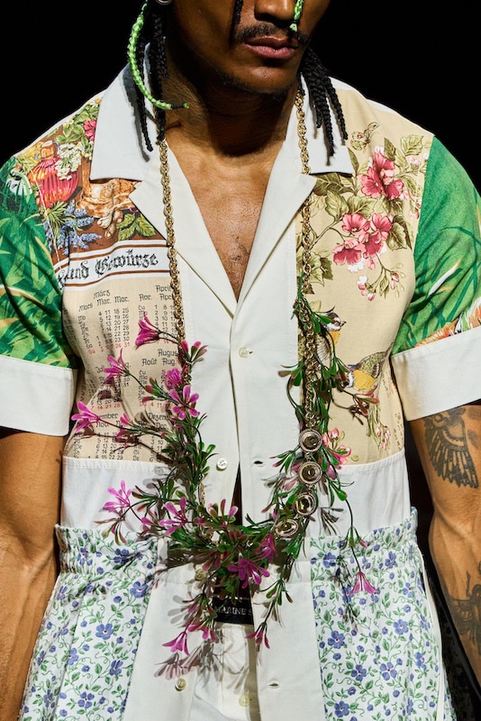 SS25 is looking for joy again. The trend reaches for communal warmth and tropical excitement. Here, we re-imagine humanity beyond common borders and connect as people again. This trend ditches business-oriented networks for the sake of real community to combat the loneliness epidemic that leads to feelings of depression and despair. With empathy as a mantra this crafted concept creates closeness via heritage art references, sentimental upcycling and energising tropical vibes that offer new vitality and hope in darker realities.