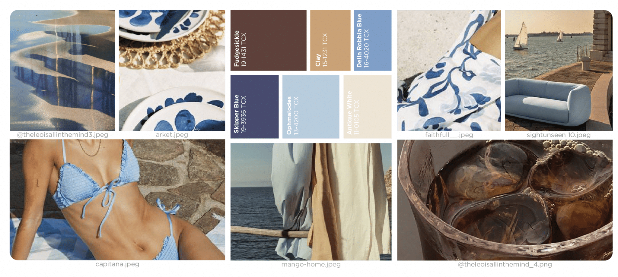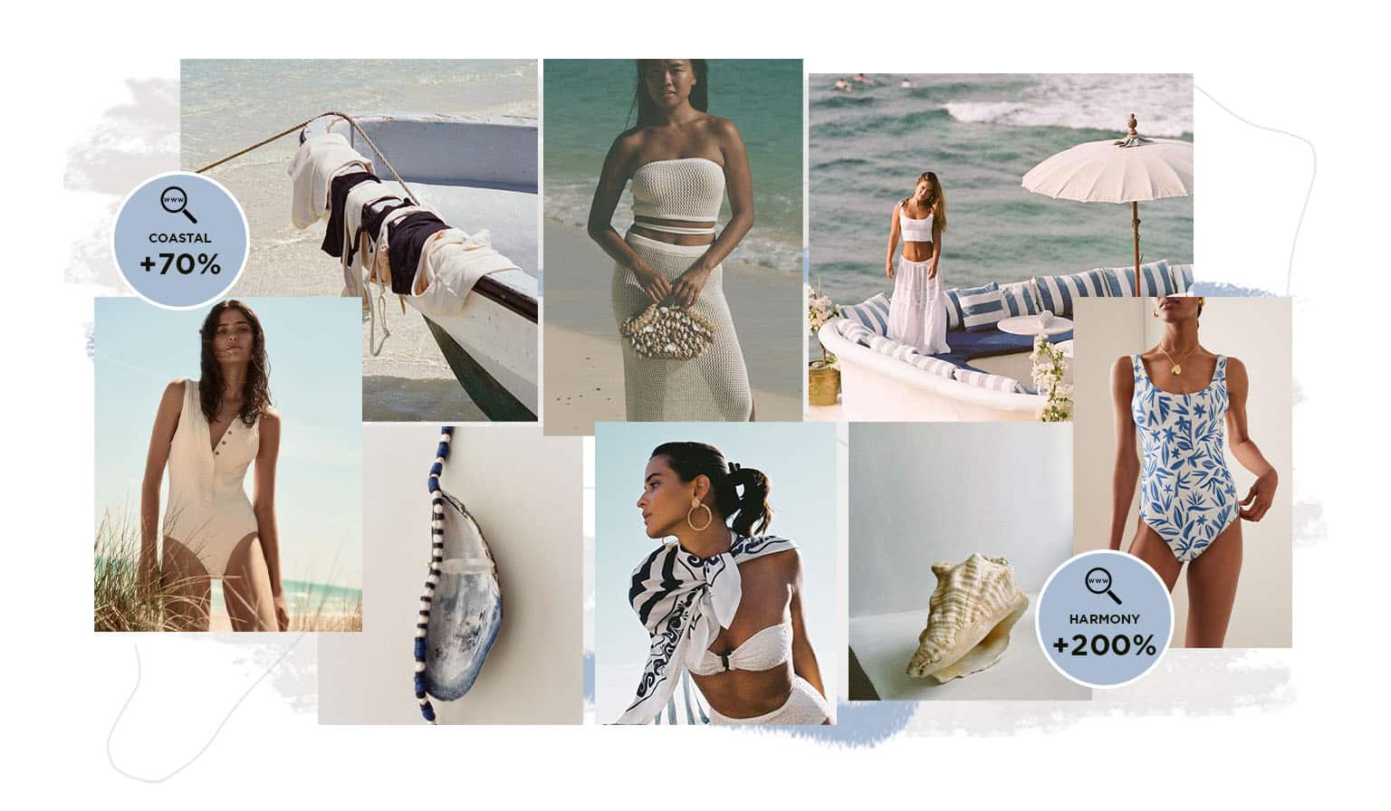 Coastal Quietude. Escape to coastal quietude a serene swimwear trend, where a dreamy and soft nautical story unfolds. Imagining the gentle embrace of a coastal breeze, this trend seamlessly combines chic elegance with a natural rusticity. Maritime stripes dance across swimsuits, echoing the rhythmic flow of waves, while tile-inspired designs evoke a sense of seaside charm. Soft basics take center stage, with seersucker, micro ribs and other micro textures adding a touch of understated luxury. The palette is a tranquil harmony of muted tones, embodying the peaceful essence of a coastal retreat. Embracing a chic yet relaxed vibe, this trend encapsulates the quiet sophistication of seaside moments, inviting wearers to bask in the serene beauty of coastal living.