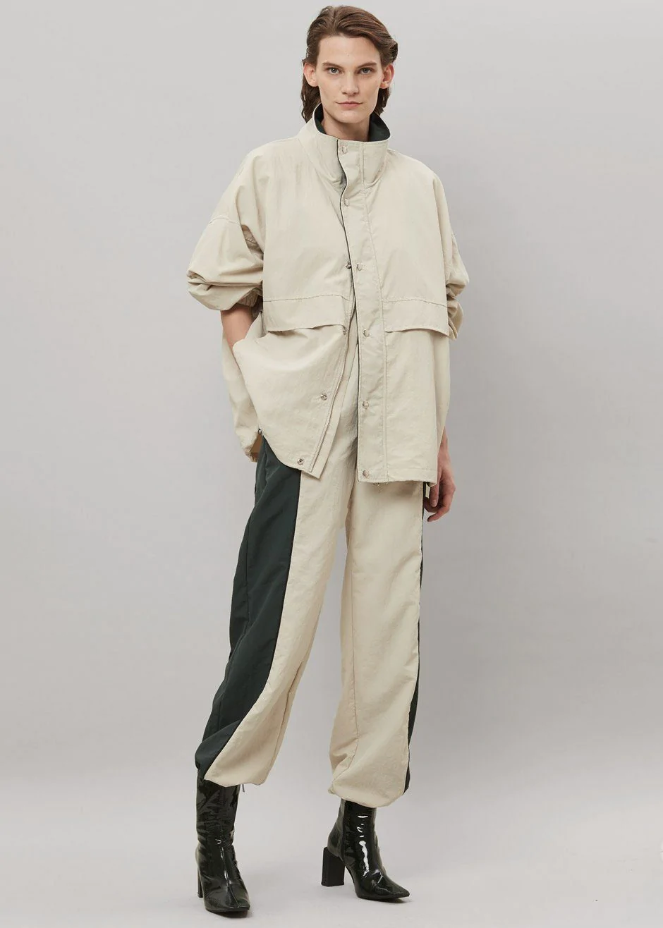 The parachute pant is all the rage at the moment. With outstanding growth rates, especially across young cohorts, the trend as propelled to be the most-desired update for the previously trending cargo. The baggy nylon look is depicting the sporty, Millennium rave-inspired look, which is amping up in cross-gender markets. As consumers are back to their old and new-found hobbies the style is not only fashionable, but similarly practical for post-sport activities. Interesting panelling and deliberate color blocking choices are crucial for the product. From retro inspired mixes à la Isabel maranta or digital-race-ready combos in line with Dion Lee’s latest fashion show, the paneled look is a great idea to celebrate the returning tracksuit and enhance fashionable active drops in next seasons.