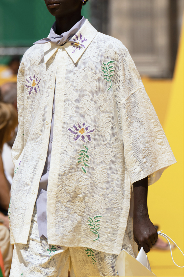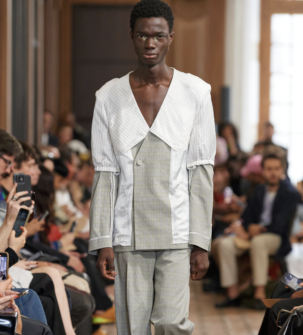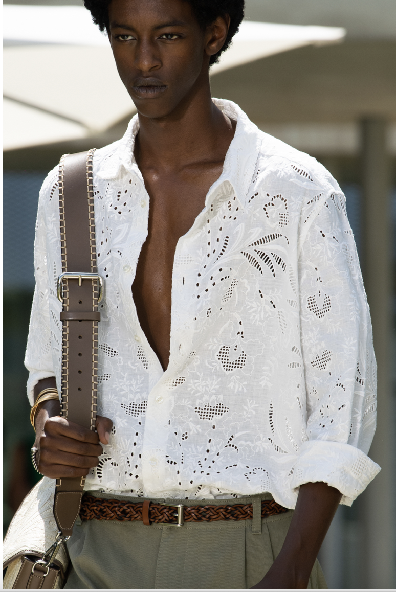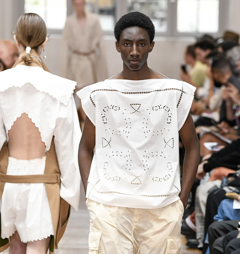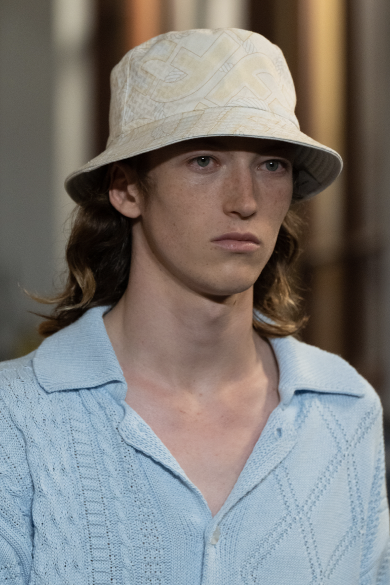 A Dutch Boy look is manifesting across menswear. With men liberating from their stereotypic gender codes, they are exploring more gentle and soft approaches to their own identities. Recent SS23 Fashion Shows revealed a distinct taste for pyjama-inspired looks and an aesthetic that draws on romantic and vintage interior elements, like toweling and sheets. From handmade needle point to broderie anglaise, elements that convey a homey message are essential here. The rather dutch look draws on palettes that range from whites and grey pigmented beiges to harmonies of blue, from light to mariner shades. A rusticity merges with delicate romantic here to create a feeling of uncompromising authenticity, a characteristic that is desired more than ever during times that seemed to have lost touch with reality and things to rely on.