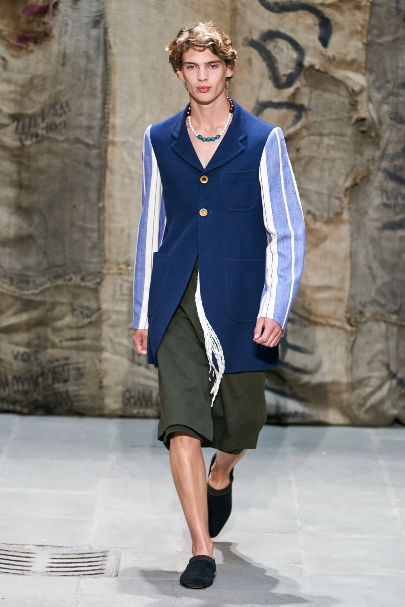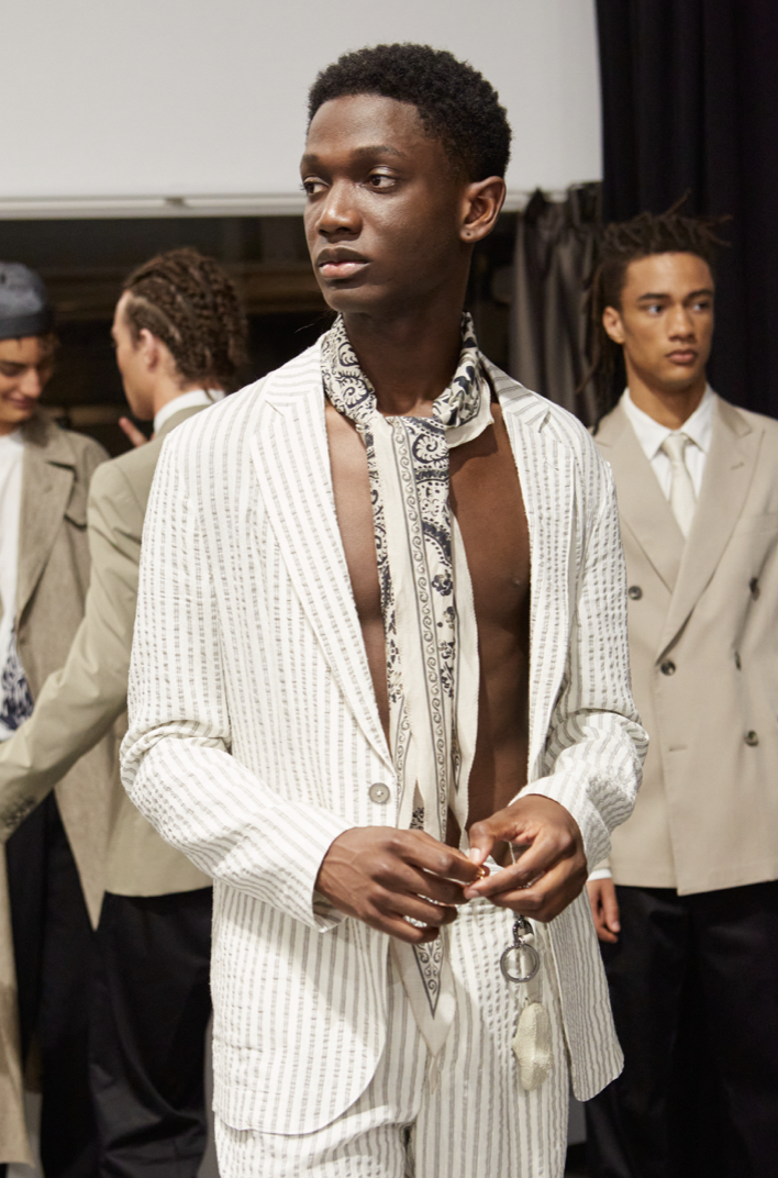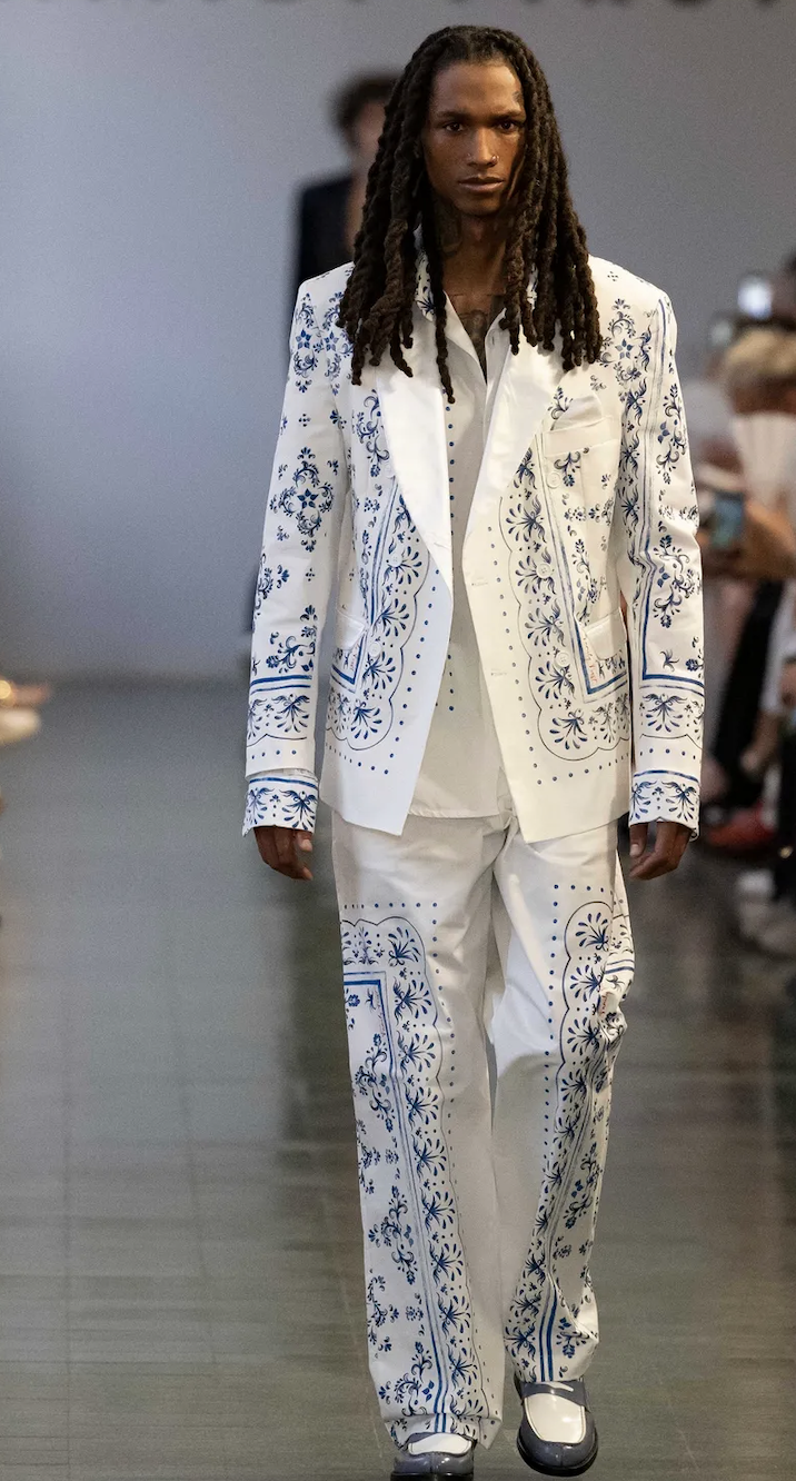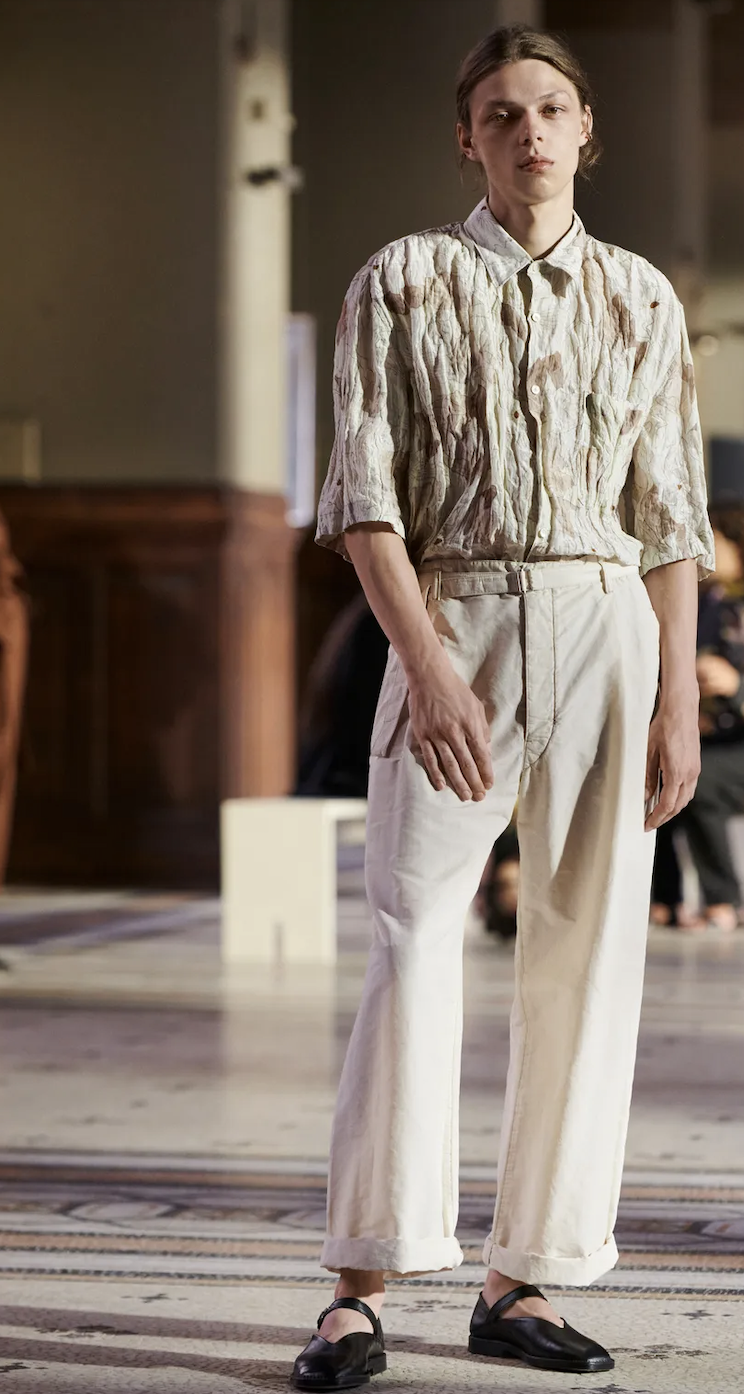 A Dutch Boy look is manifesting across menswear. With men liberating from their stereotypic gender codes, they are exploring more gentle and soft approaches to their own identities. Recent SS23 Fashion Shows revealed a distinct taste for pyjama-inspired looks and an aesthetic that draws on romantic and vintage interior elements, like toweling and sheets. From handmade needle point to broderie anglaise, elements that convey a homey message are essential here. The rather dutch look draws on palettes that range from whites and grey pigmented beiges to harmonies of blue, from light to mariner shades. A rusticity merges with delicate romantic here to create a feeling of uncompromising authenticity, a characteristic that is desired more than ever during times that seemed to have lost touch with reality and things to rely on.