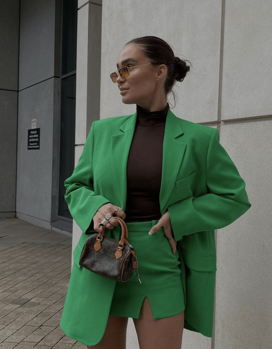 During this transitional period one green is trending all over Instagram. A tone that balances between wintery dark and summer brights: green screen. So what has caused fashion’s green fest? Started with a return to once overlooked green color ways, the iconic Bottega Veneta look of FW21 have triggered a wave of the color. Since then, the color has tackled across instagram at rapid pace. And its momentum seems not to have reached a plateau yet. This strong and dazzling green creates a visual impression that conflicts and breaks the norm. With such a daring quality, green-screen has grasped the most fashionable influencers. It is especially prominent ti boost more muted and minimal feeds with a hint of eccentric color. The tone is used in all-over looks, in front of green-screen backgrounds and more commercially convinces in accessories and statement pieces. The manifestation of the metaverse can be thematically linked to the concept. However, the slight digital hue still balances on a sophisticated scheme and feels more indulgent than its neon and lime trending rivals. Make sure to bet on this trend for the next seasons, as it will retain its iconic status for a bit longer.