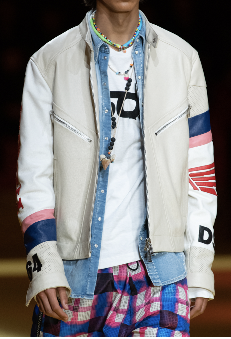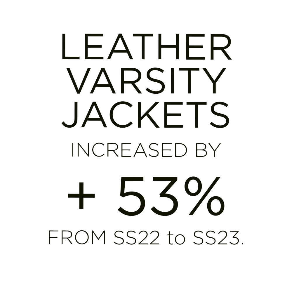 Motomania has become an apparent trend theme for womenswear over the past seasons, similarly men are looking at the recurring design motif as well. Inspired by a need for adrenaline, sweat, excitement and subversion, motorsport themes and racing attire are forming trending wardrobes now. From biker boots, armor elements and leather details, one piece is showing to be a strong highlight for the market: the biker jacket. Even on the recent SS23 runway shows, the biker and varsity style has grown by +53% compared to SS22. From classic interpretations in black fused with bold color, to newer dopamine interpretations or more romantic pastel styles – the iconic piece should not be missed in upcoming assortments!