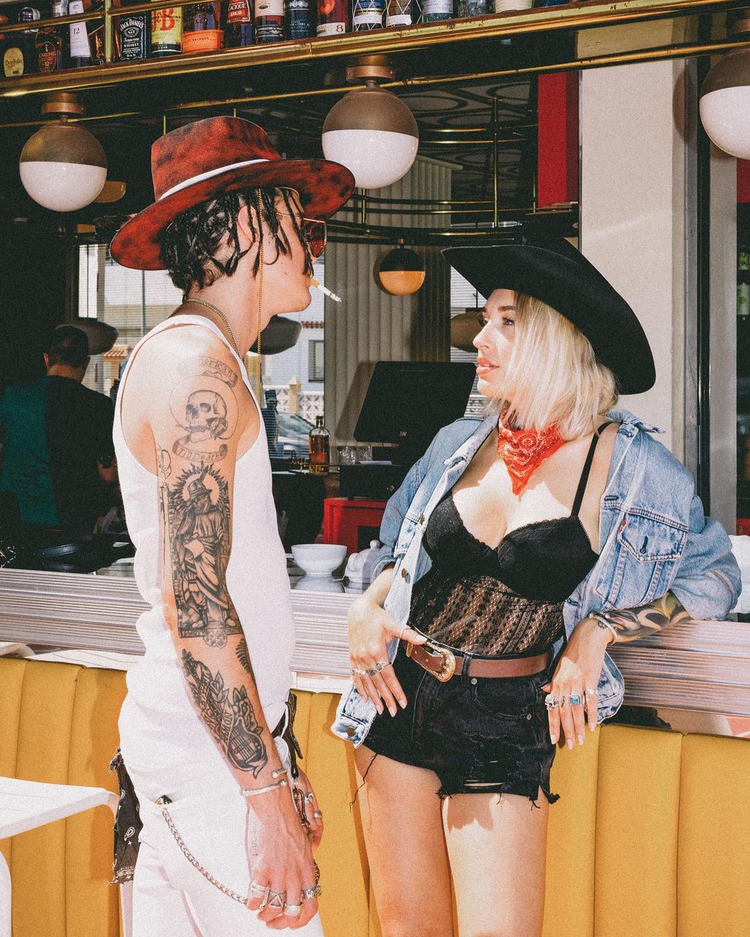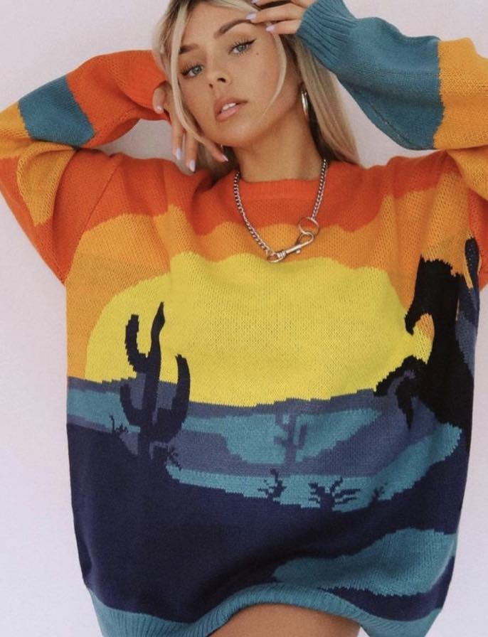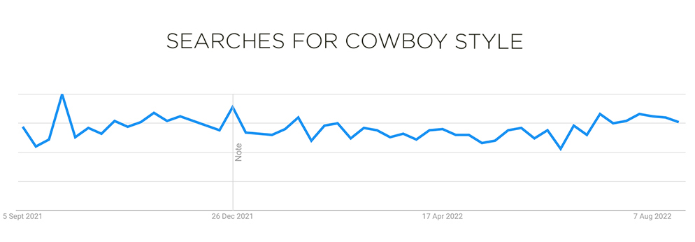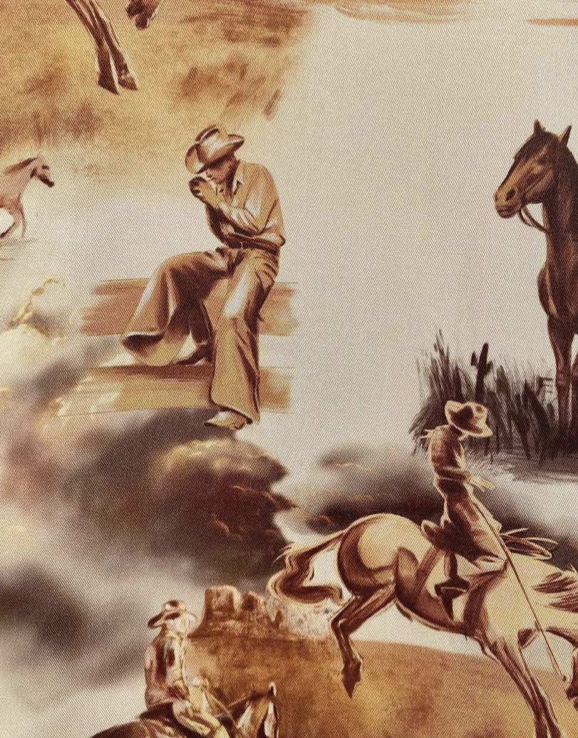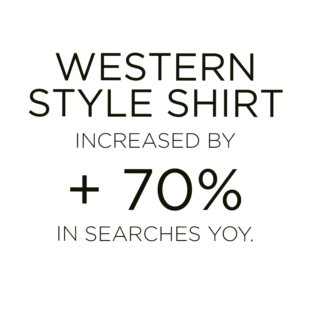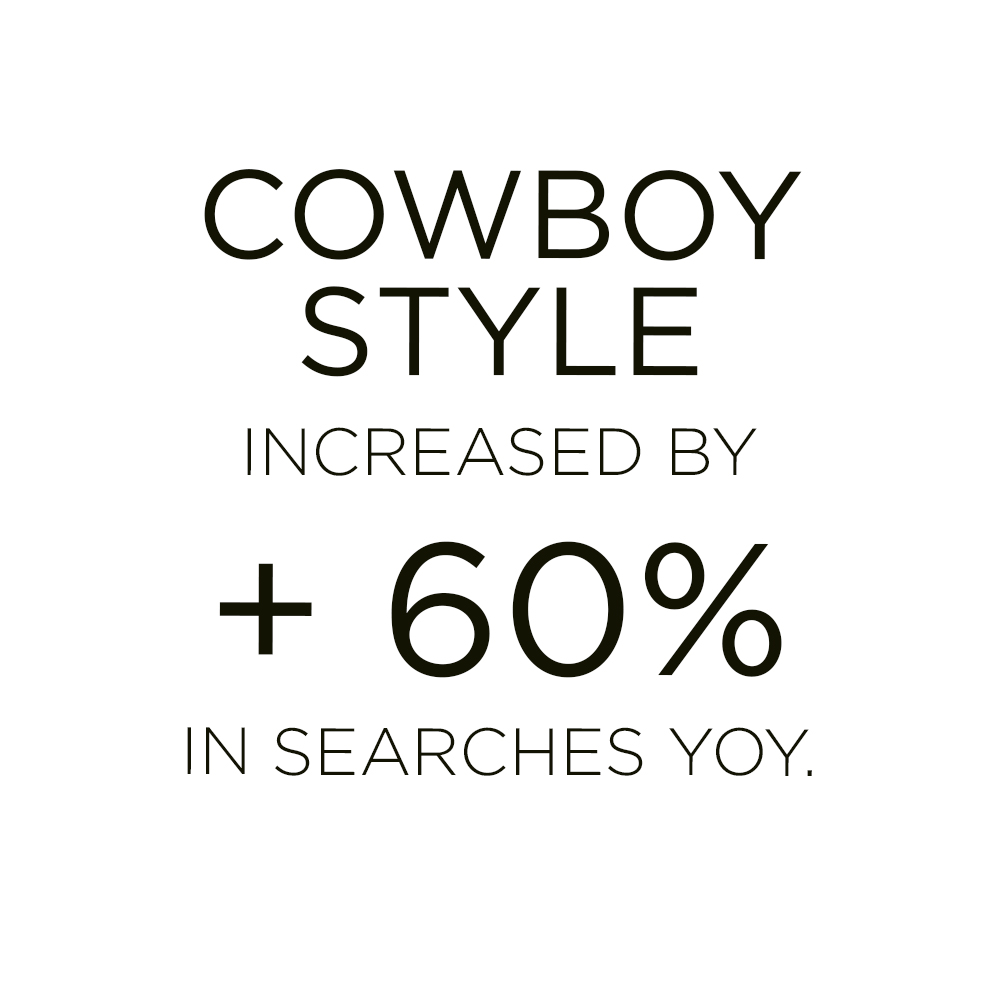The Cowboy Look is trending across Social Media and Streetstyle Looks from Influencers and Bloggers. The Cowboy hat adds a distinctly stylish nuance to any outfit and takes us back to the sturdy and authentic life of rural ranches. The rodeo spirit has a strong influence on knit and prints as well. From tacky 2000s placed rodeo and cowboy images to all-over doodles or abstract graphics, the visual of horses and cacti is all the rage. Big sceneries feel the most contemporary and are the most effective as jacquard knits or on scenic men’s shirts. The color range is exploring dusty earth tones from beige to brown or minimal black and whites. For a youthful notch, a colorful tint can draw on excitingly bold combos and popping highlights. Aside from prints, hats, cowboy boots and western style piping on shirts and trousers is not to miss for this rodeo renaissance.