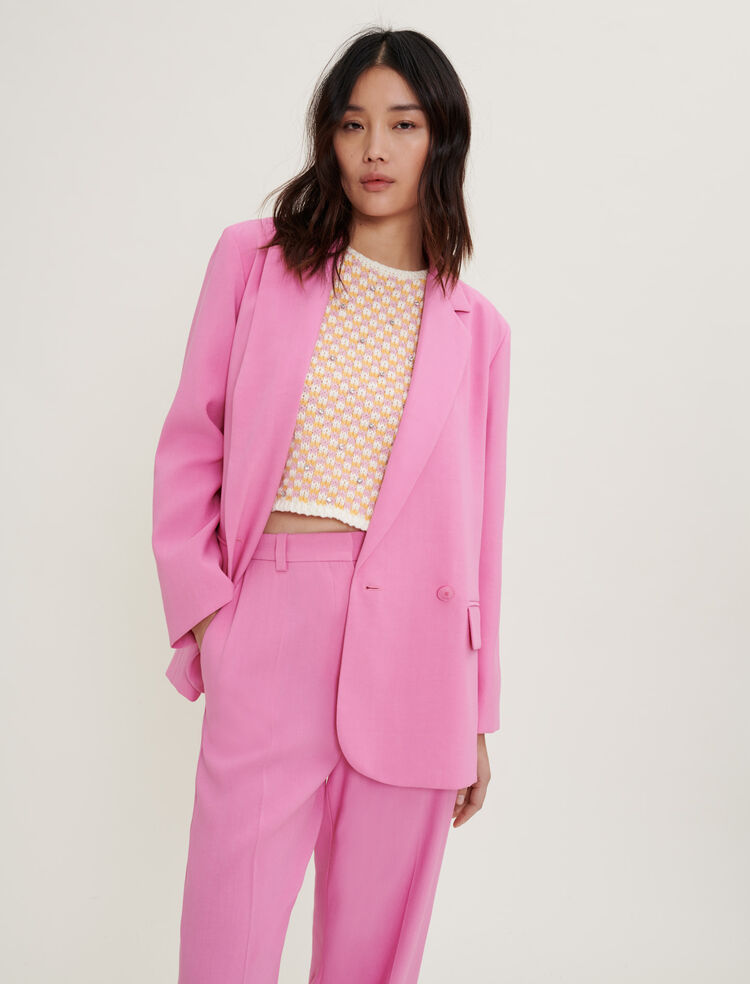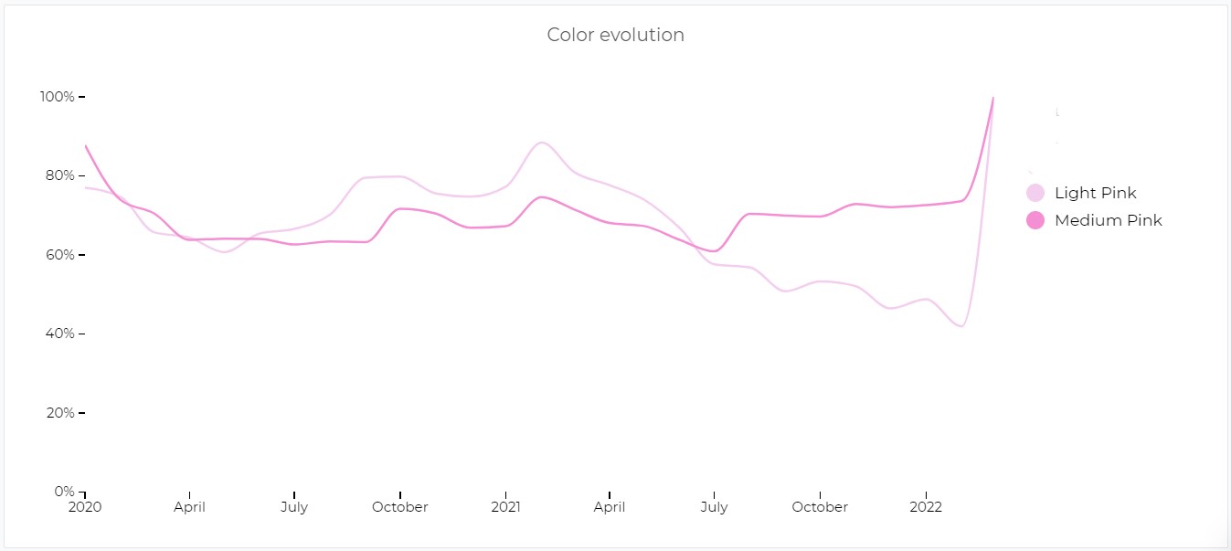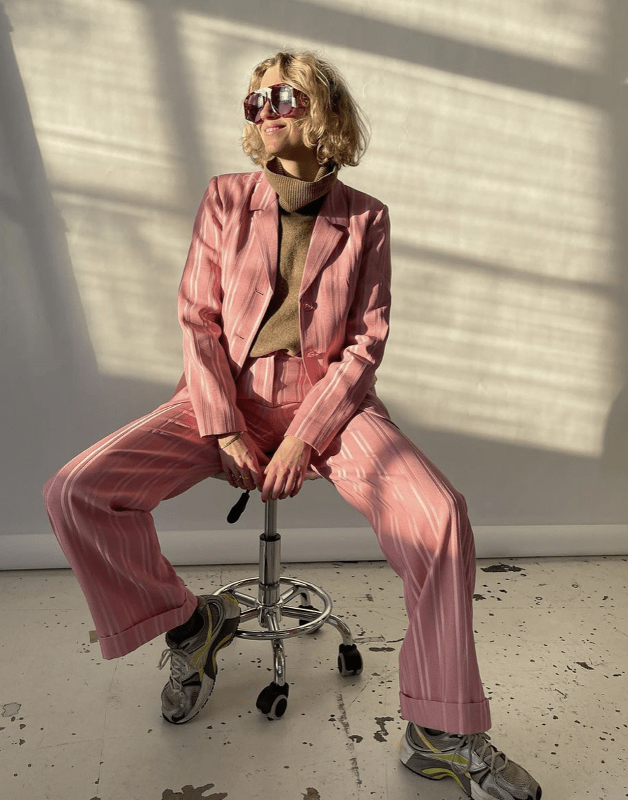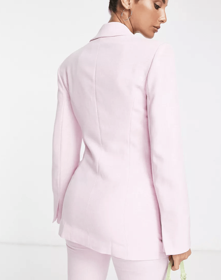 Accounting for 14% of suits across e-commerce, the pink set is leading recent SS22 collection drops. The style has already emerged as a favorite during the past fashion shows and still retains its show-stopping quality on current runway presentations as well. The suit perfectly embraces a new sense of femininity, which builds on the duality of womanhood, of being soft and strong at the same time. The masculine tailoring aspect of the suit, as well as the female notions that are embedded in pink shades fuse into a versatile piece. From dopamine bolds to subtle pastels, the iconic style can fuse into a multitude of narratives.