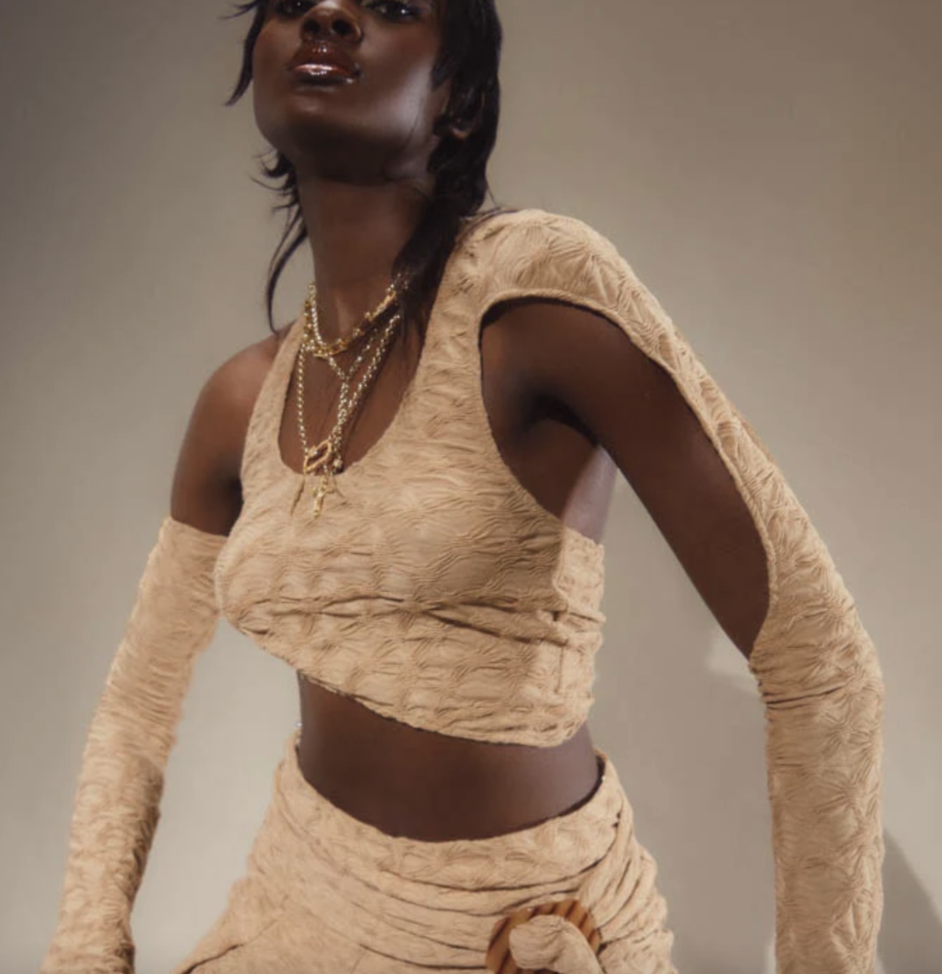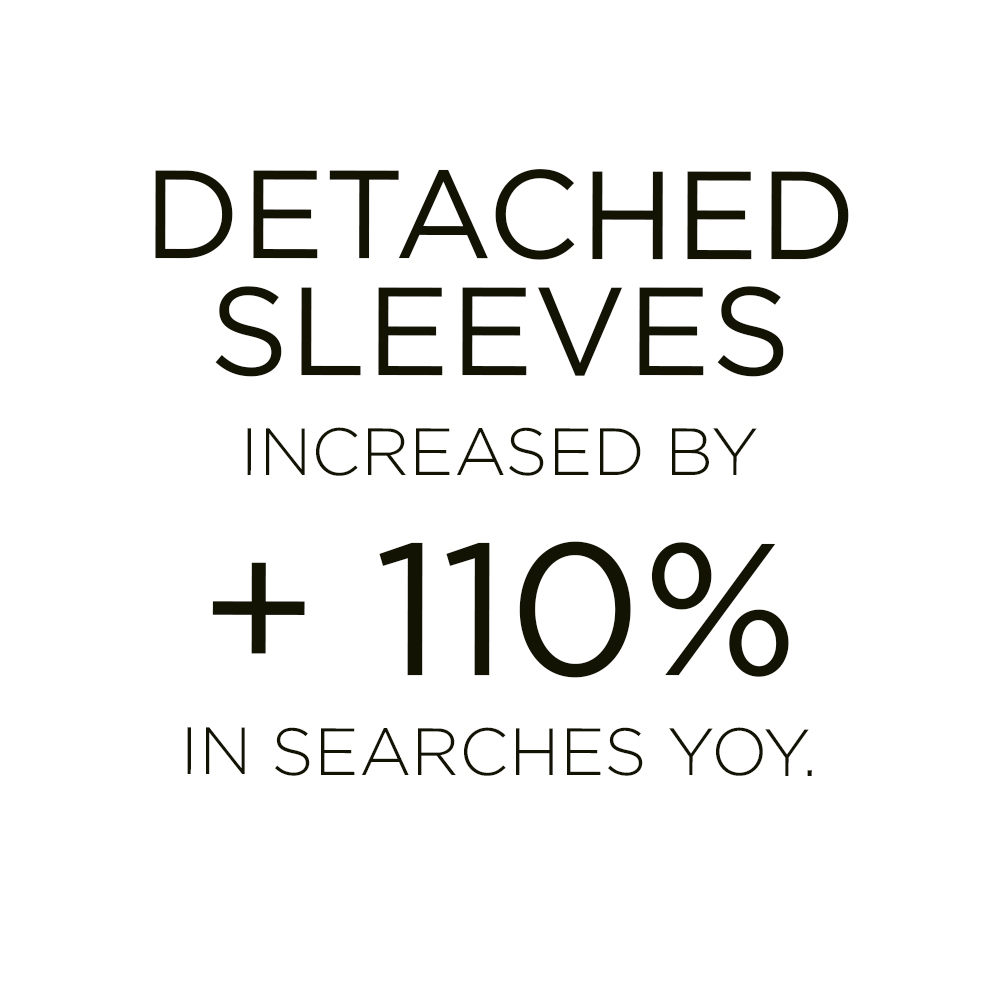 The arm-sleeve and bolder look of the 2000s is augmenting in visibility across fashion influencers and trending brands, especially for young cohorts. While a more disruptive aesthetic has already been reshaping silhouettes with subversive draping and deconstruction, the retro favorite aligns well with this new style. With a profound understanding for the female body styles are rearranged with a complex allure to reshape the millennial base. The separated sleeves can be made of arm-sleeves, boleros and even transform into gloves and might be fully or semi detached. Baring the shoulder or parts of the arm is key here and shows how seductive unexpected liberations can be. The pieces offer the possibility to design sleek elegant styles with co-ordinated add-ons, and elaborate more on silhouettes cut outs, layering and floss or belting details.