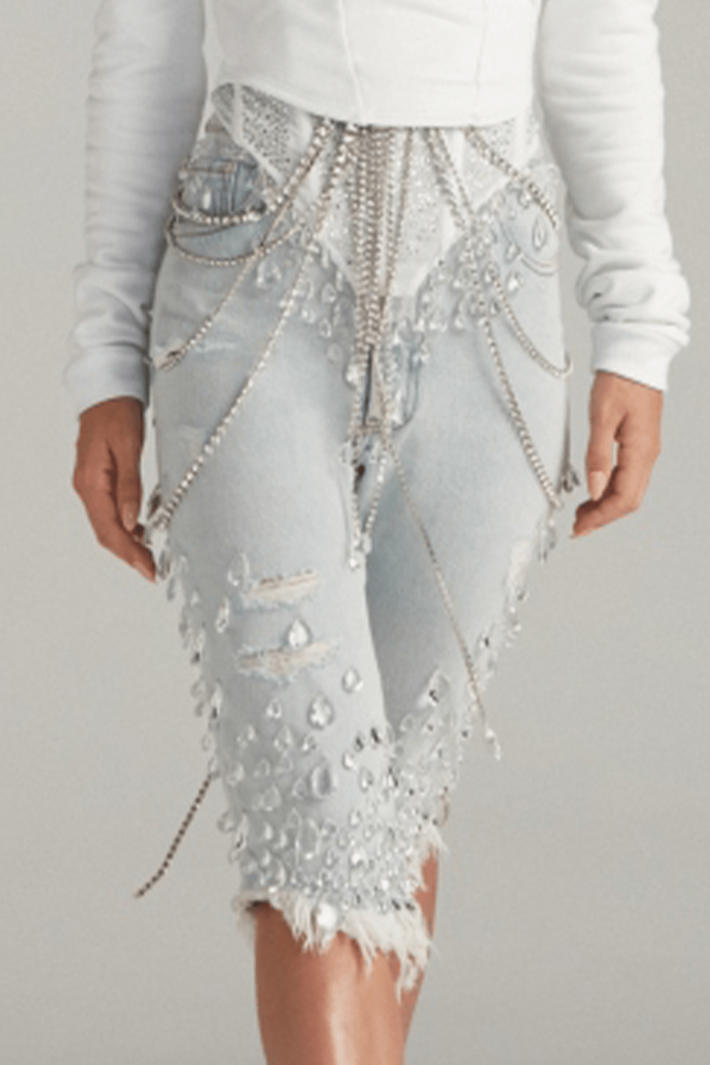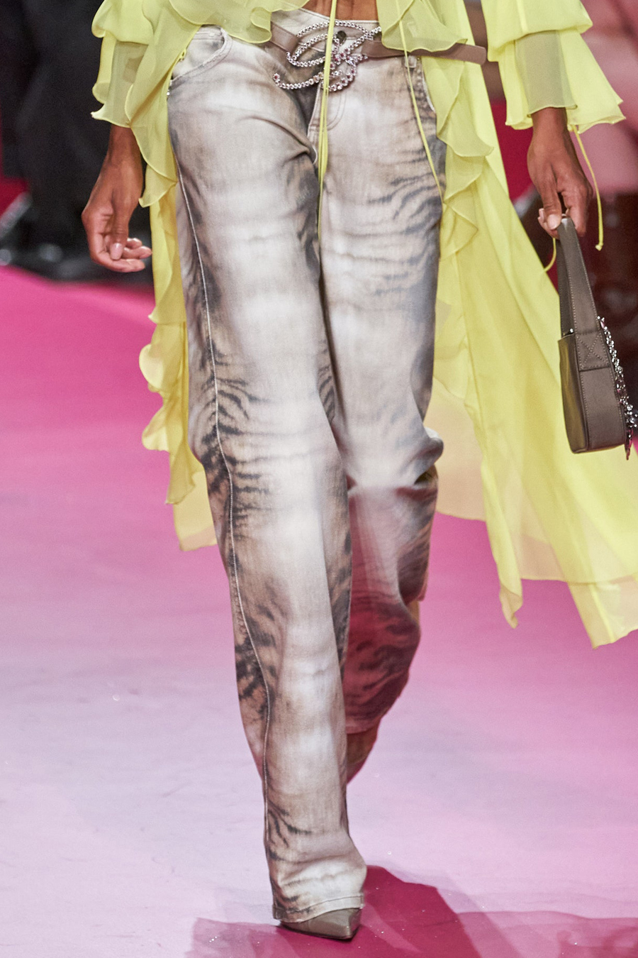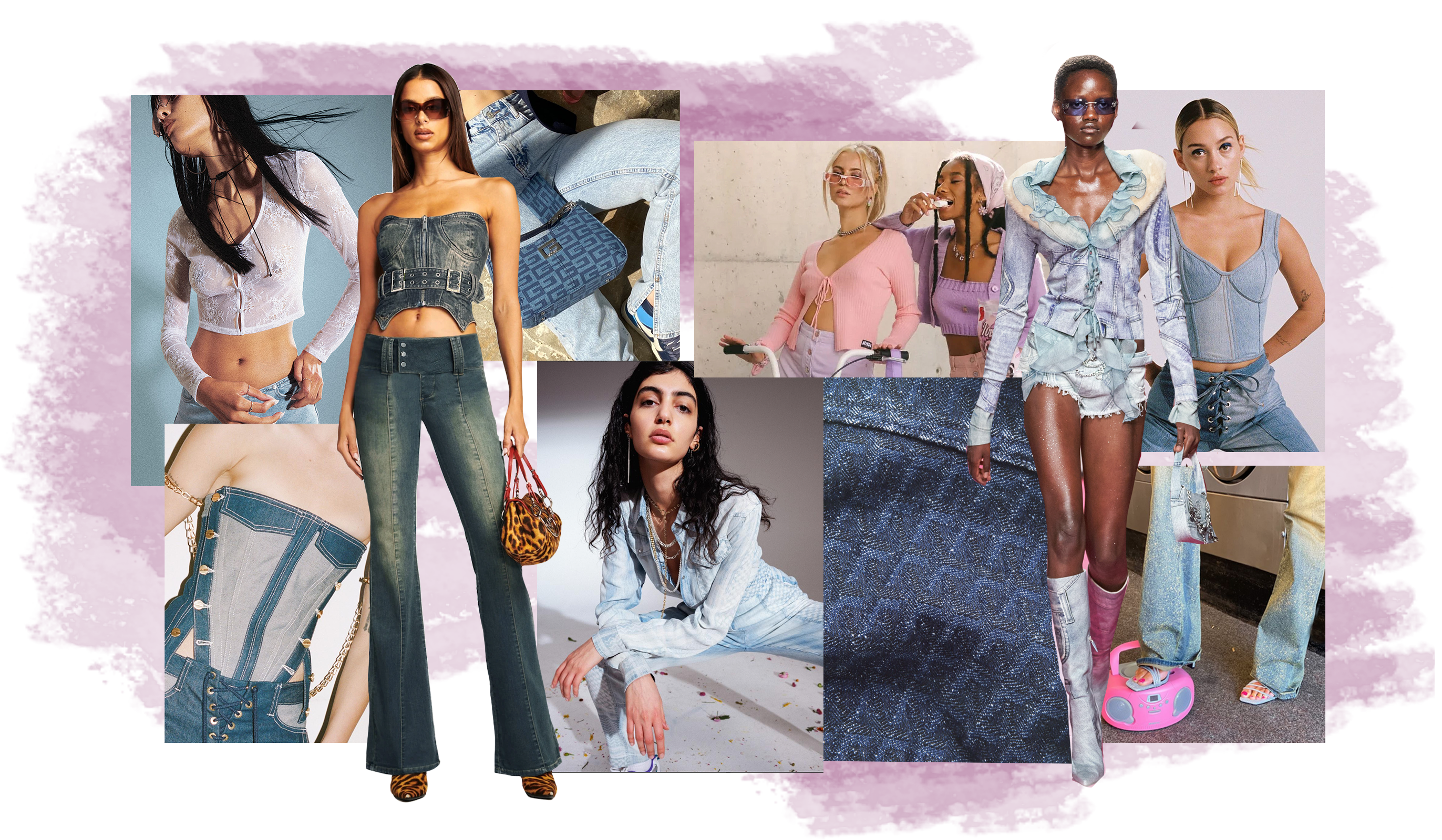 The 2000s are iconic for their denim staples. From baggy jeans to denim boots bags and all-over MTV Britney looks, the fabric is a cornerstone of the trending era. Consequently the Y2K Essence that gains momentum for SS23 seems unsurprising. However, looks are adding a spirit of emancipation and phantasy to nostalgic styles. This denim trend piles up embellishments to amp up denim and to move away from its workwear aesthetic to a more pronounced sense of femininity and sexy. The accessorized story achieves to establish an authentic Y2K flashback due to the girly glitz and glam and tacky-doomed staples which are returning for summer 23. In terms of finishings, the design story is looking towards a wide palette of rhinestones, crystals and sequins for a sparkling appearance. At the same time, glossy metal coatings create a shiny yet sleek touch. The taste for all-over prints explores 00s-classics holograms and animal styles while a patchwork denim print is recreating a denim look on different materials. Finishings across hems, pockets and cut-lines with bedazzling beads and strings of rhinestones add a couture-vibe to everyday looks. Pushing the feminine notion into a more seductive and sexy direction, laced-up details, especially with unexpected placements, are liberating female desires and enhancing their dominant feeling of empowerment. In the following report, you can find all the Y2K denim essentials: