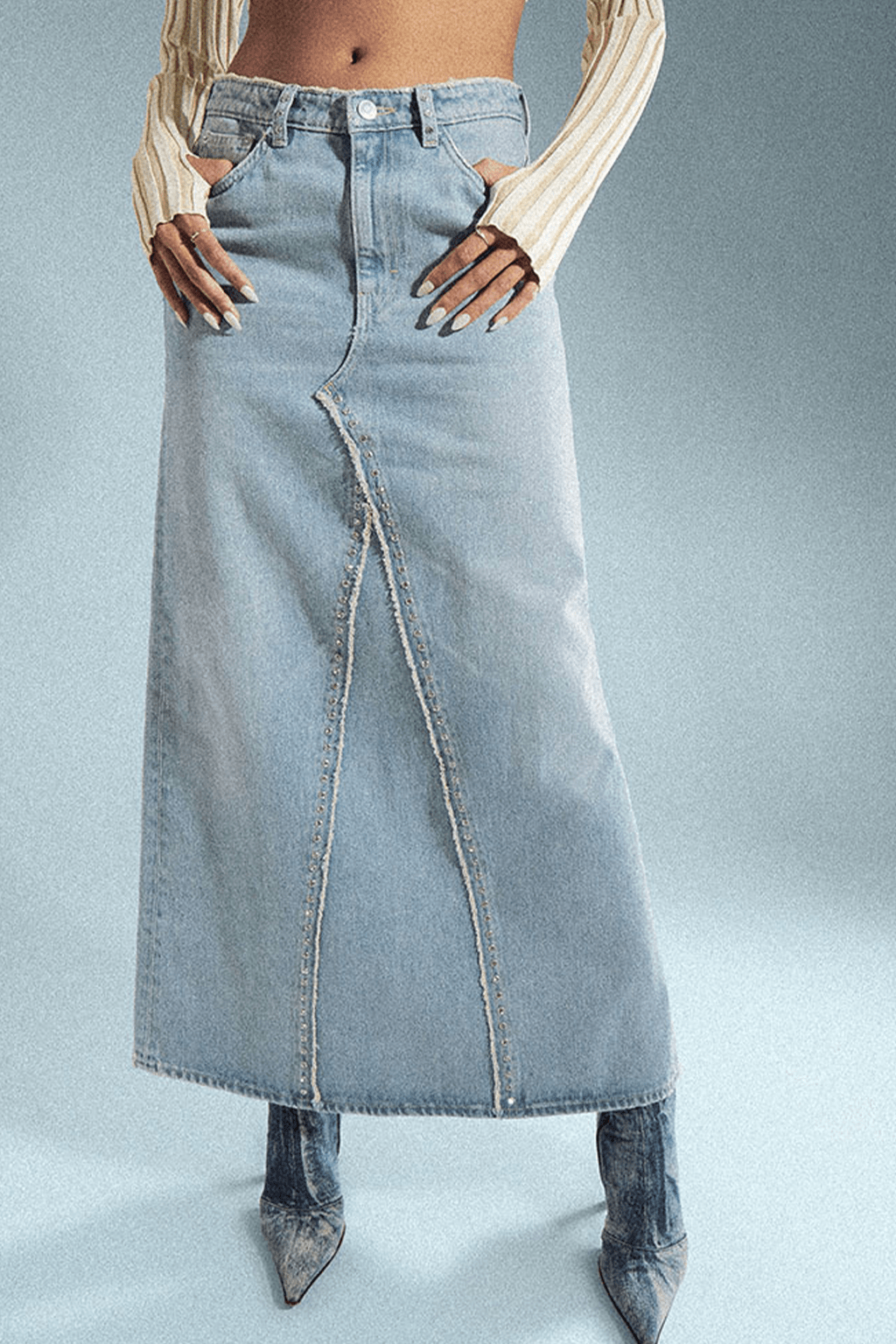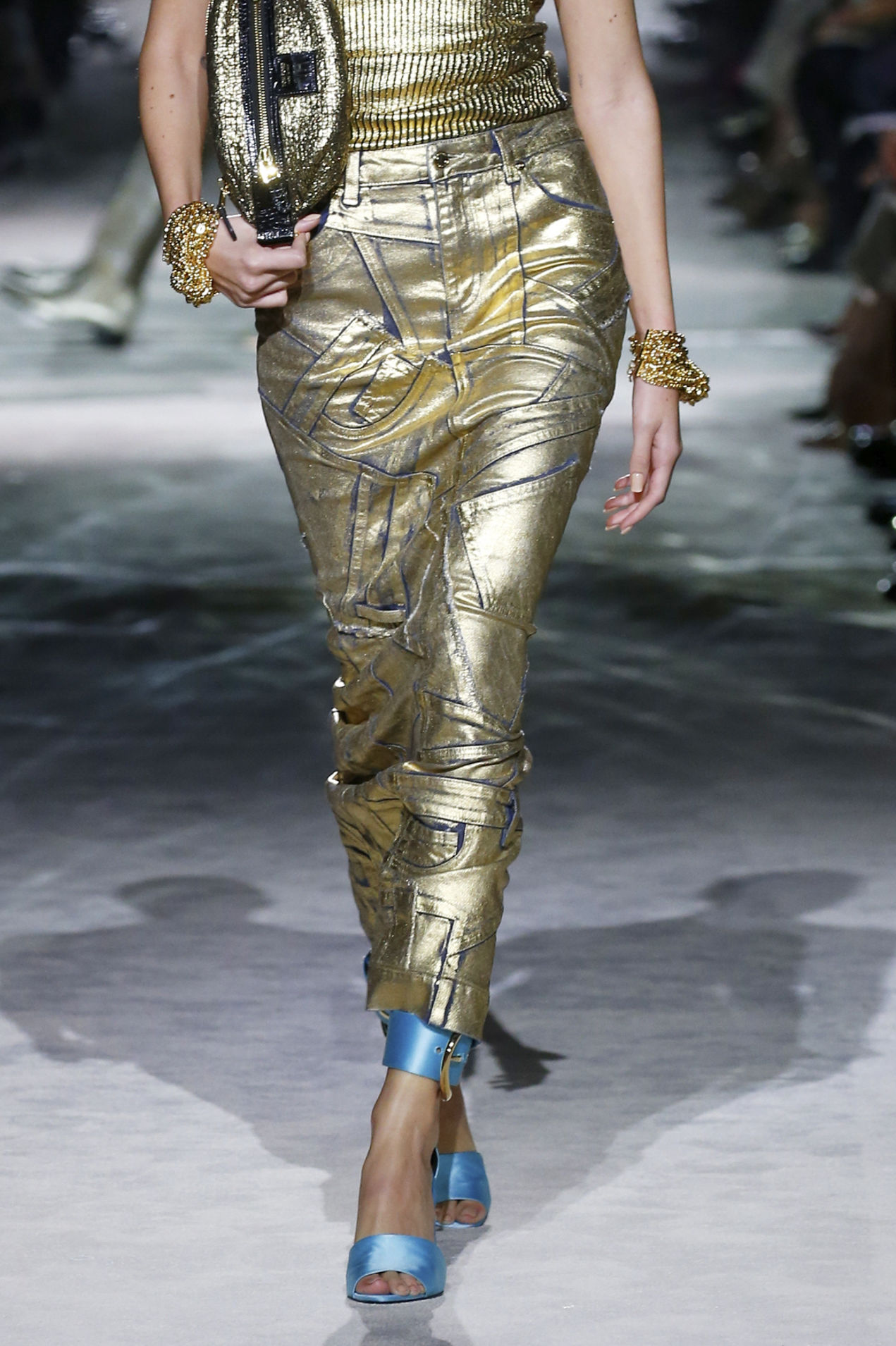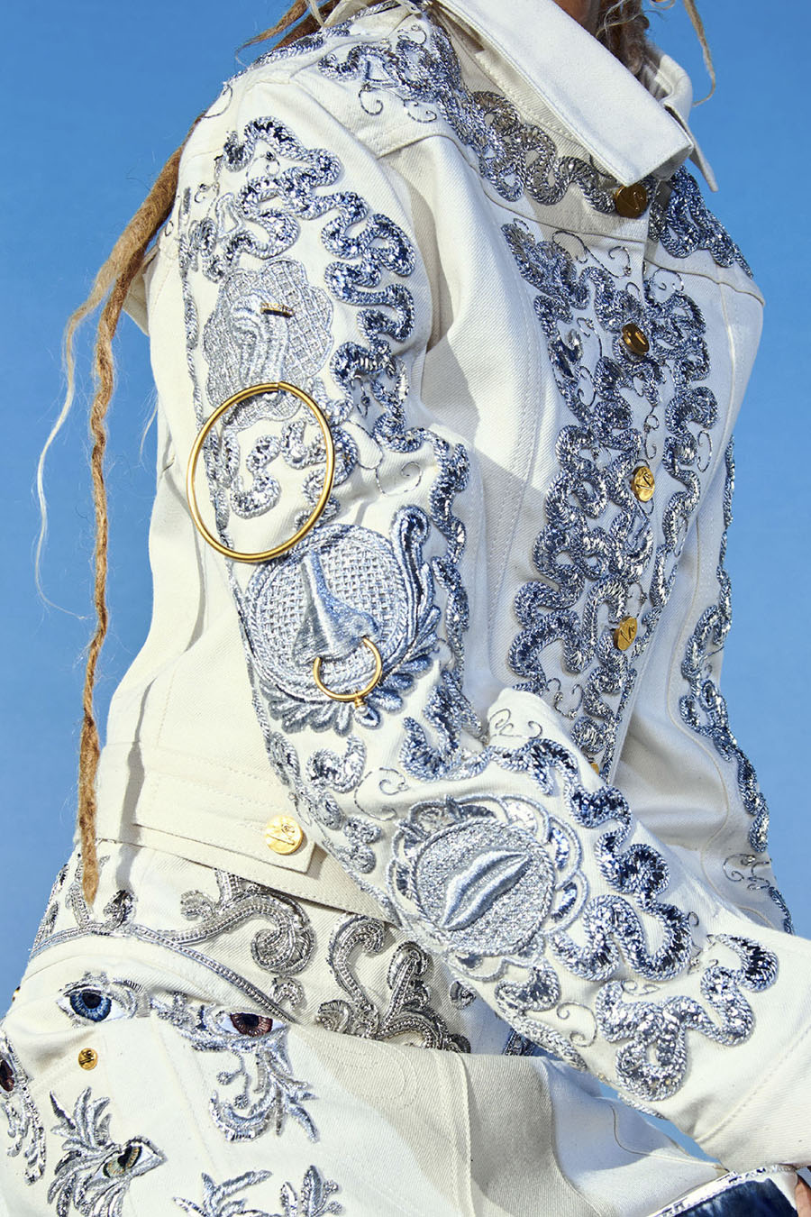 The 2000s are iconic for their denim staples. From baggy jeans to denim boots bags and all-over MTV Britney looks, the fabric is a cornerstone of the trending era. Consequently the Y2K Essence that gains momentum for SS23 seems unsurprising. However, looks are adding a spirit of emancipation and phantasy to nostalgic styles. This denim trend piles up embellishments to amp up denim and to move away from its workwear aesthetic to a more pronounced sense of femininity and sexy. The accessorized story achieves to establish an authentic Y2K flashback due to the girly glitz and glam and tacky-doomed staples which are returning for summer 23. In terms of finishings, the design story is looking towards a wide palette of rhinestones, crystals and sequins for a sparkling appearance. At the same time, glossy metal coatings create a shiny yet sleek touch. The taste for all-over prints explores 00s-classics holograms and animal styles while a patchwork denim print is recreating a denim look on different materials. Finishings across hems, pockets and cut-lines with bedazzling beads and strings of rhinestones add a couture-vibe to everyday looks. Pushing the feminine notion into a more seductive and sexy direction, laced-up details, especially with unexpected placements, are liberating female desires and enhancing their dominant feeling of empowerment. In the following report, you can find all the Y2K denim essentials: